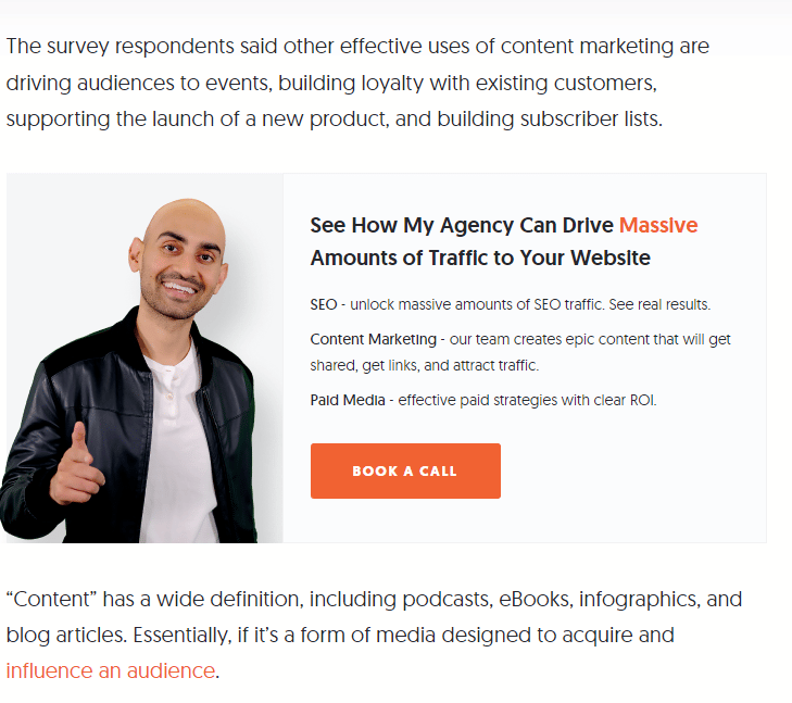 Parce que Neil Patel sait que très peu d’internautes vont aller jusqu’en bas de l’article. Il sort donc l’artillerie lourde dès le début.