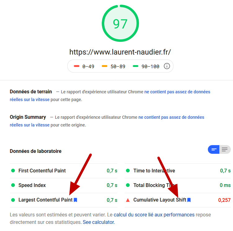 D’après les objectifs de Google, l’indice CLS doit être compris entre 0 et 0,1 (il n’y a pas d’unité).