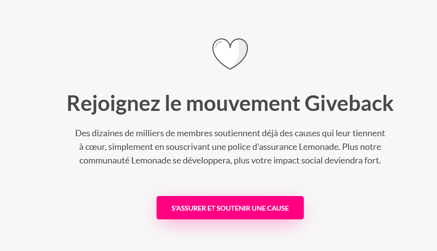 Dans cet exemple, le fait d’utiliser le libellé « S’assurer et soutenir une cause » au lieu d’un simple « S’assurer » renforce l’identité et favorise la conversion.